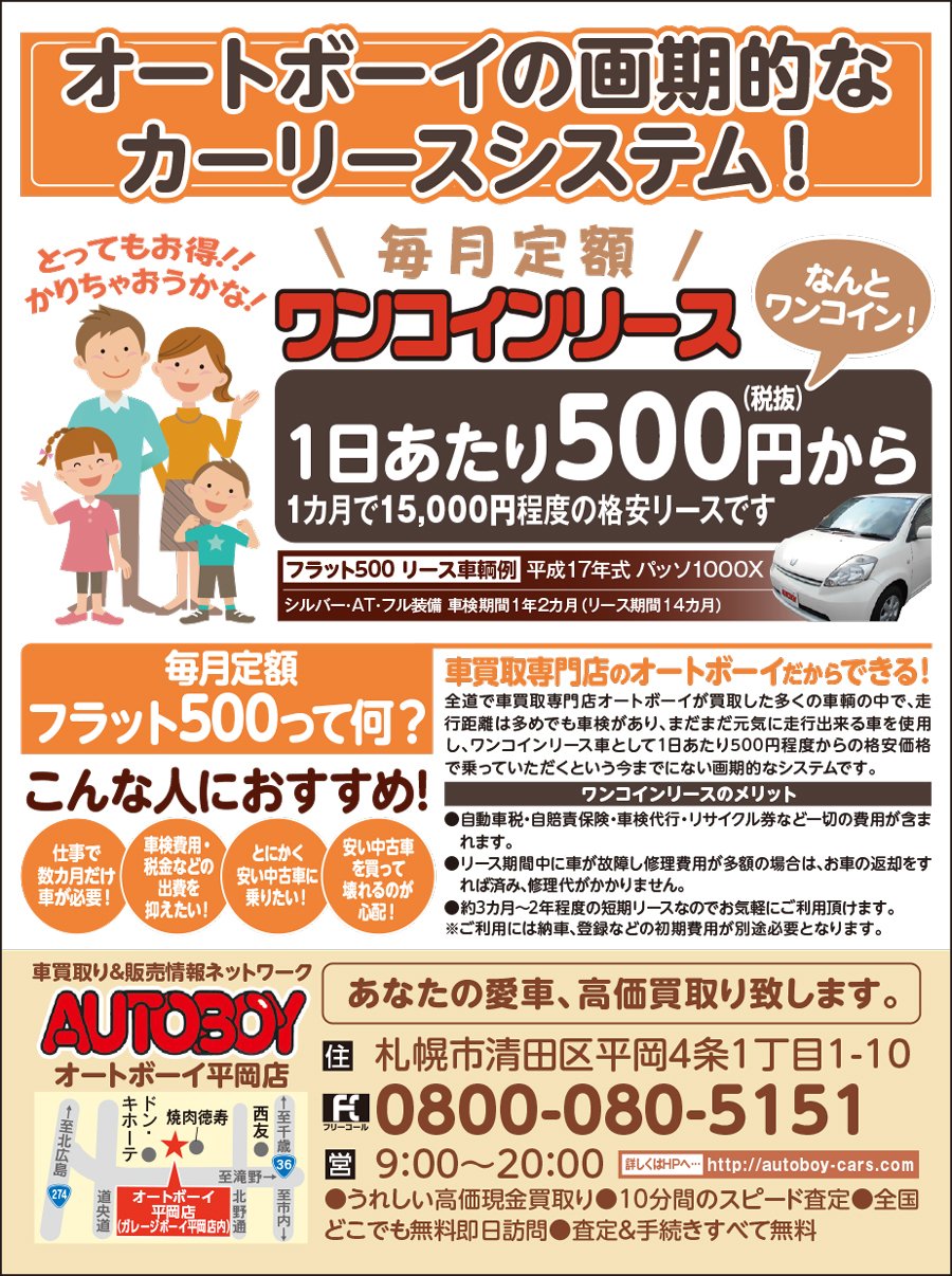 オートボーイの画期的なカーリースシステム 2020 08 18 札幌市の車 バイク 自転車 オートボーイ 平岡店 札幌のお店 イベント 動画やレシピ情報 ふりっぱーweb