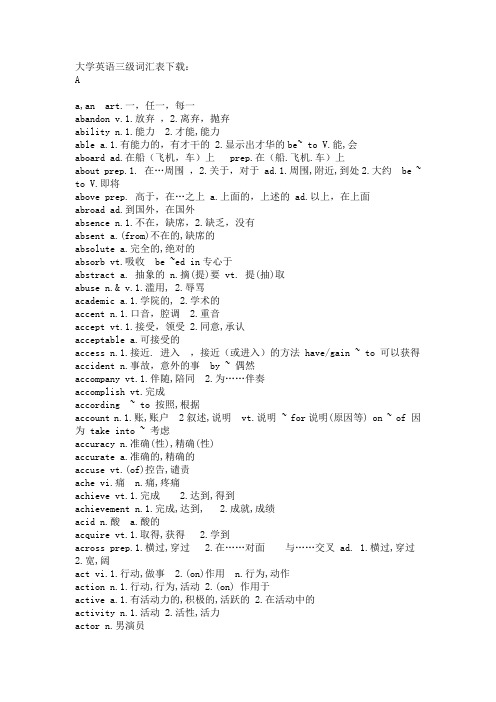 Pets公共英语三级大纲词汇 4107个 下载 百度文库