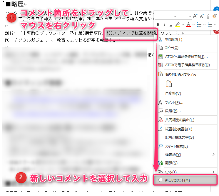 ワード コメントを挿入や印刷する
