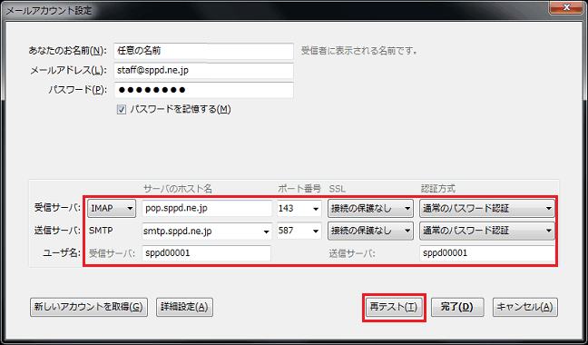 Thunderbird 45 のメール設定 Sppdレンタルサーバー 会員サポート