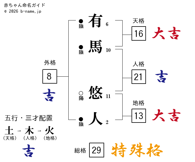 有馬悠人 ゆうと という姓名の男の子の姓名判断診断結果 完全無料の子供の名前決め 名付け支援サイト 赤ちゃん命名ガイド